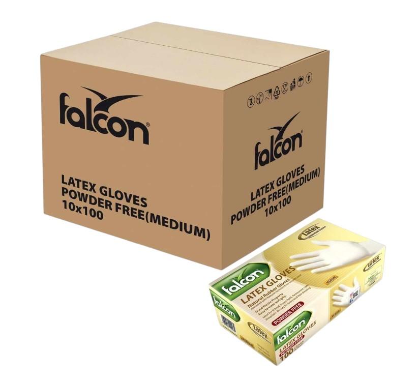 Falcon Latex Gloves Powder Free, Medium - 100 pcs