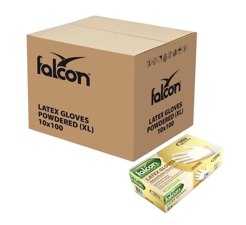 Falcon Latex Gloves Pre-Powdered, Extra Large - 100 pcs