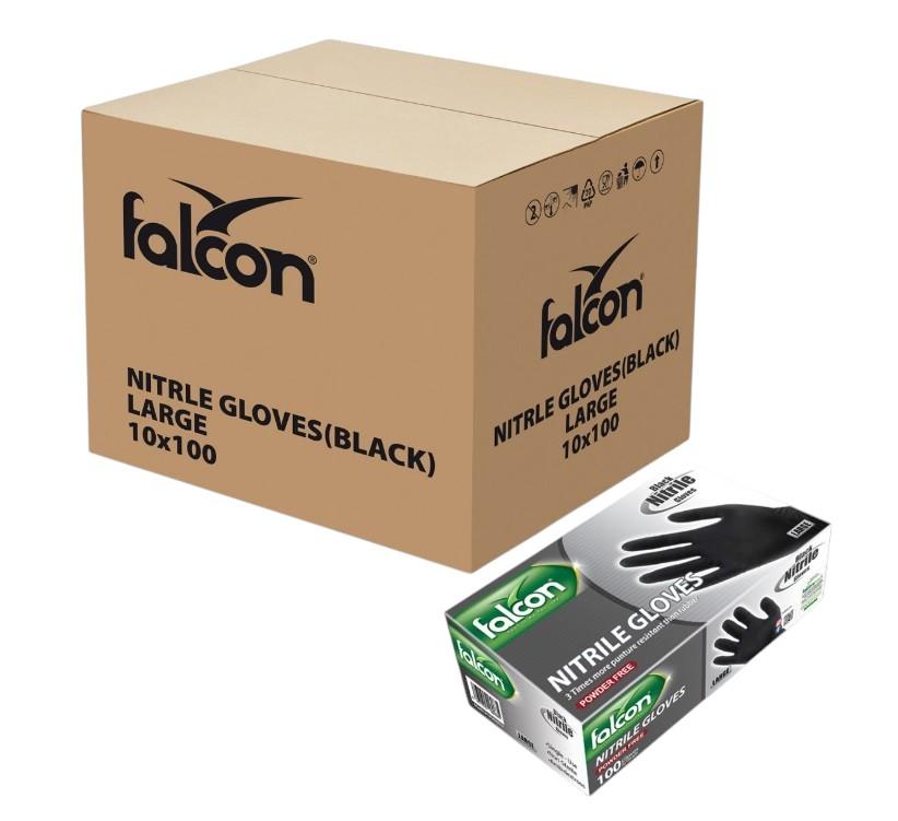 Falcon Nitrile Gloves Powder Free, Large (Black) - 100 pcs