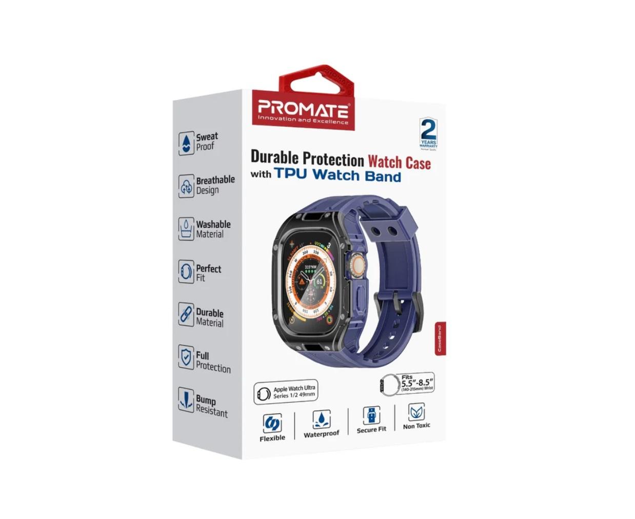 Promate CaseBand, Durable Protection Watch Case with TPU Watch Band, Blue