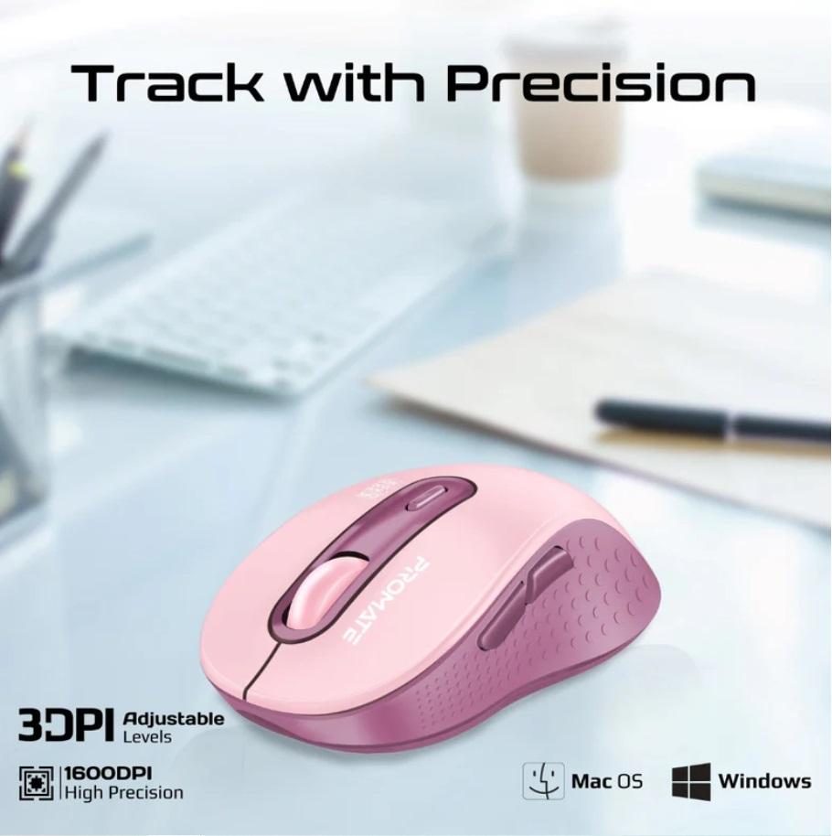 Promate Ken, Dual Mode Wireless Optical Mouse with BT & RF Connectivity, Pink
